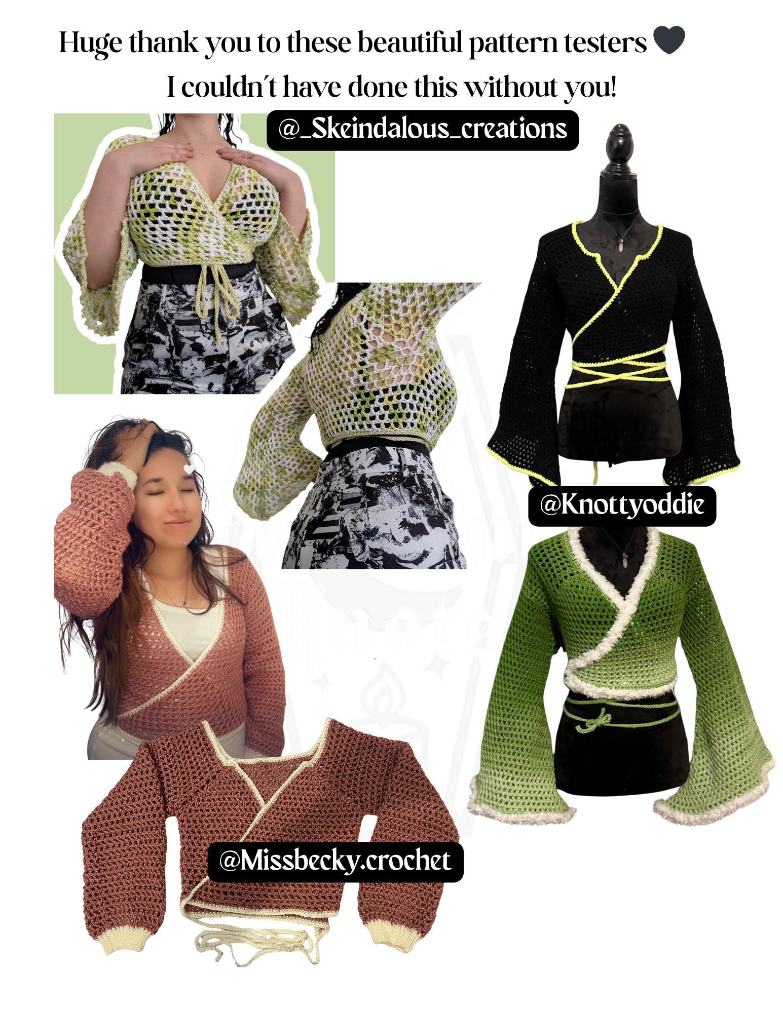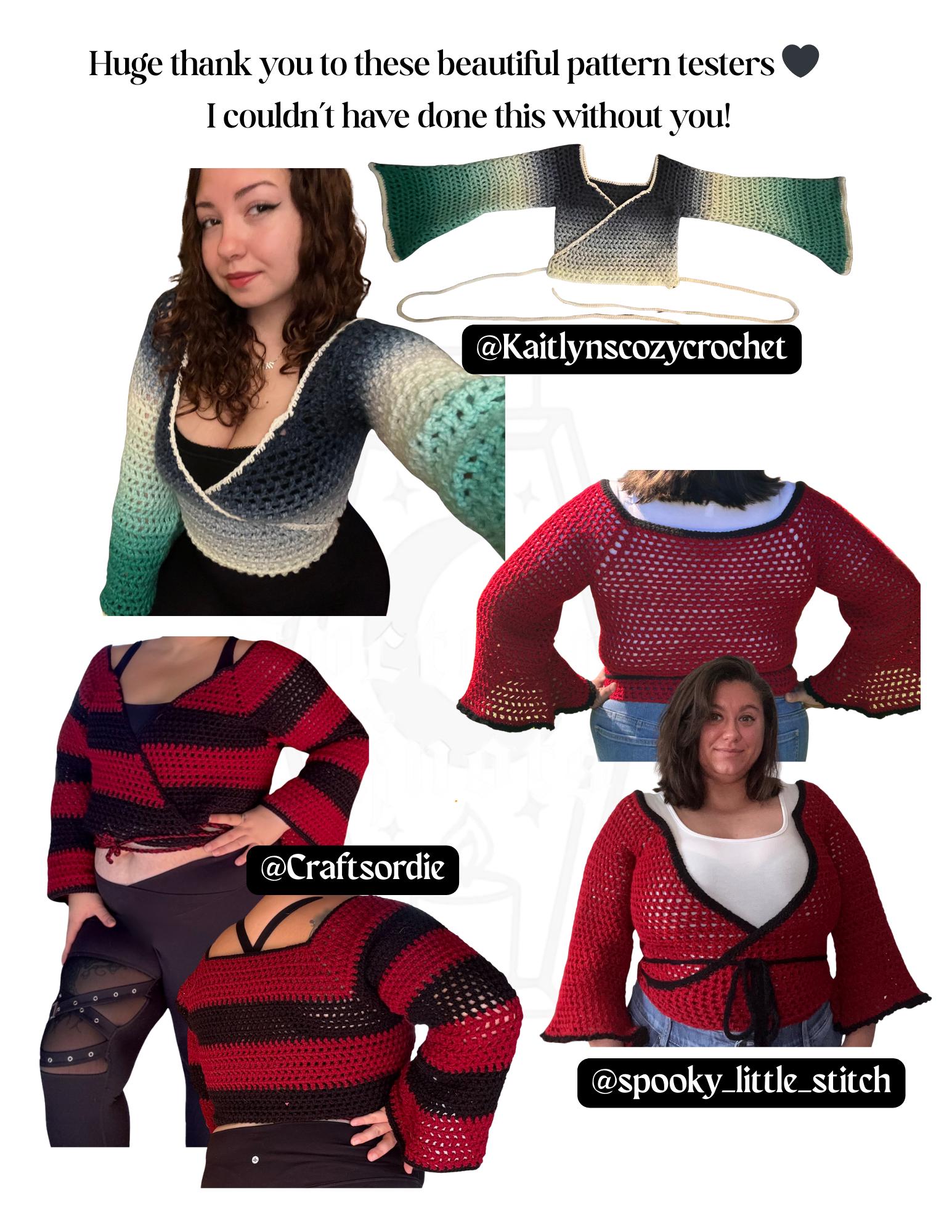 Lightweight, drapey, and endlessly customizable — the Nyx Wrap is designed to flow with your creativity. Whether you want a breezy crop-top wrap for layering or a full-body statement piece, this pattern adapts beautifully to your style.